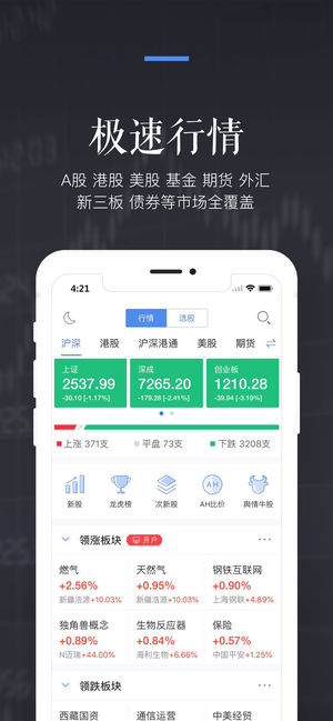 *开户交易:支持沪深、港股、美股开户和交易;