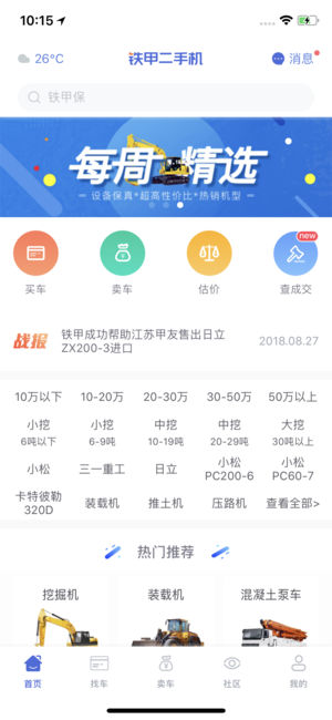 铁甲二手机,二手工程机械交易和服务平台,近600人的线下服务团队能够为来自全国各地的工程机械用户提供免费带看服务。
