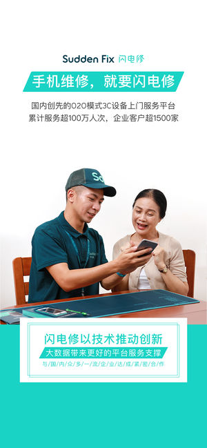 闪电修,隶属于深圳闪电修网络科技有限公司,主要为消费者提供一站式上门手机维修和回收服务,为企业提供手机整体服务解决方案。公司依托自主研发的维修订单分发系统,智能便捷地实现配件供应链管理、工程师派单及定位、维修录像及售后跟踪等功能,带给客户与众不同的互联网+维修新体验。
