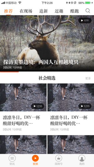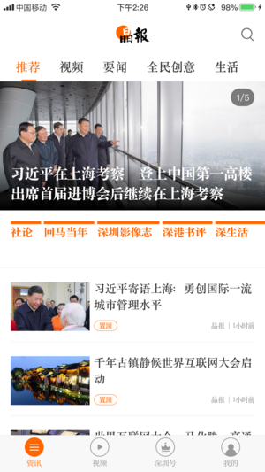 视频优先:更新鲜的新闻现场,更好玩的生活趣事,更给力的体育活动,更耀眼的娱乐明星,更接地气的文化活动,更萌的宠,更靓的车。看晶视频,了解你我的深圳。