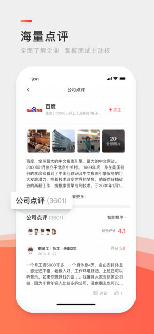 中华英才网——新版英才App增加公司点评模块,致力于解决公司信息不透明,打造成“职场的大众点评”。在这里有最全最专业的企业信息,以及来自员工之间最真实的公司评价,你可以了解到更多公司内幕,也可以匿名分享你的态度。找工作选offer必备神器,让你“少走弯路,避免踩坑“~