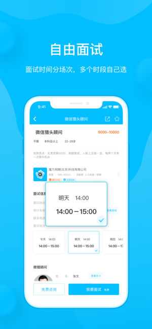 魔方微猎以现场面试预约透明化为特色,将整个招聘流程线上化。专业的微猎顾问帮求职者定制职位,做面试辅导,为求职者和招聘企业节约成本,提高了找工作和招聘的效率。