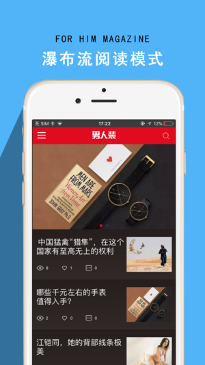全新改版的《男人装》官方版APP,采用分类化瀑布流的浏览方式,使界面更加美观的同时,也让用户的阅读体验更为便捷。同时,改双周刊为月刊,让读者可以一次性阅读完与当期纸刊杂志同步的高质量精品内容。而付费制度则由之前的按单期付费变为了按时间付费,简而言之就是你花一个月的订阅费甚至可以读完我们创刊12年的所有精彩内容,这种实惠是前所未有的。除此之外,新版APP中还提供大量日更新的免费资讯,让阅读更加精彩。