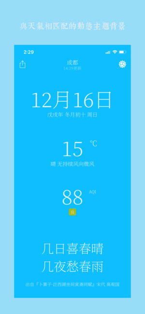 – 支持 Siri 捷径,在设置中添加添加到 Siri,通过 Siri 语音来查看天气预报、空气质量以及品味古诗词名句