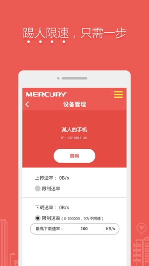 ——设备管理:显示接入的手机/平板/电脑,支持禁用蹭网设备;