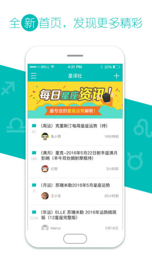 星译社下载地址 大小 5.5 MB 暂无安卓下载 苹果下载 暂无电脑下载 星译社更新内容 更新最新的签名证书。 星译社介绍 星译社是一款给用户带来国外专业星座大师提供的每日星座运势的专业软件,可以帮助您第一时间了解当日以及次日的运势。大师级UI交互设计,轻易上手。让您更懂身边的人。星译社是您日常必备的软件之一。 星译社截图