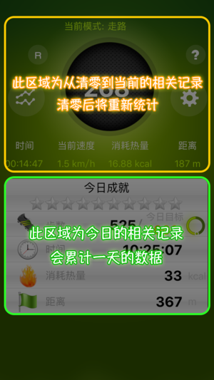 2、显示你消耗的热量/卡路里的。