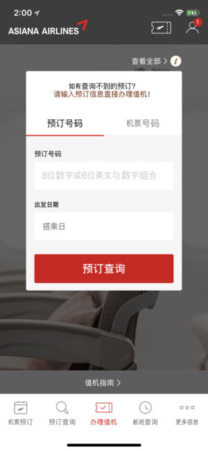 – 提前订座、值机、登机牌查询