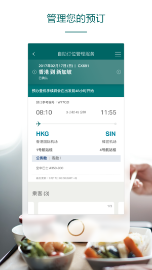 – 登录会员可检视全新的预订列表,快速查看所有即将出发的航班预订