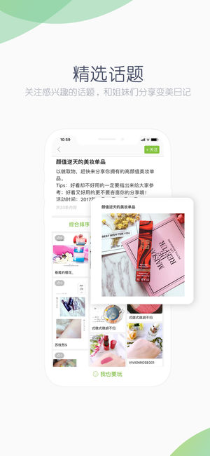 抹茶美妆下载地址 大小 119.2 MB 暂无安卓下载 苹果下载 暂无电脑下载 抹茶美妆更新内容 修复一些已知问题,优化体验。 抹茶美妆介绍 2000万时尚女性在抹茶美妆分享变美干货,涵盖护肤化妆、穿衣搭配、减肥塑身、美发美甲、美容整形等类别,从头到脚全方位帮你变美。 抹茶美妆截图