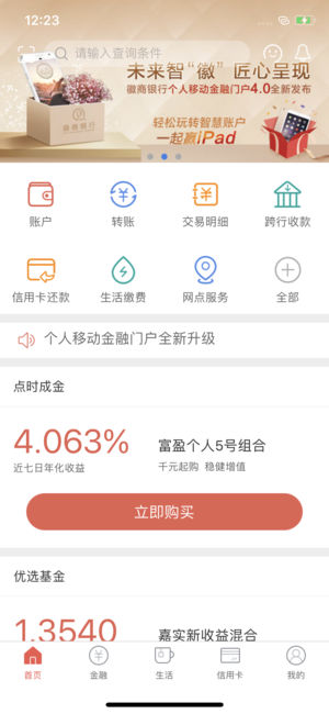 徽商银行个人移动金融门户秉承开放、共享、智能、互动的设计理念,以账户管理为核心,融合“花、赚、借、还”等多个场景,连接跨银行、跨账户、跨行业多种产品和服务,致力打造更智能化、人性化的产品,为用户带来更便捷、更轻松的金融服务体验。