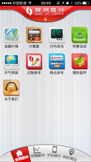●金融服务:最新利率表、行内资讯,特惠活动、客户服务为您提供各类金融信息。