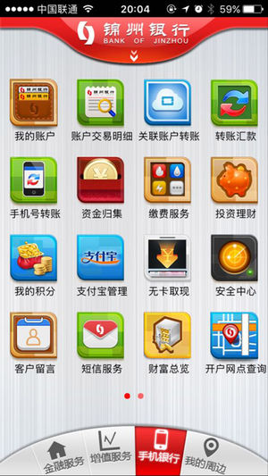锦州银行手机银行iPhone客户端是我行专为iPhone手机客户打造的移动金融服务平台,设置四大功能模块,让您畅享轻松惬意的移动金融生活: