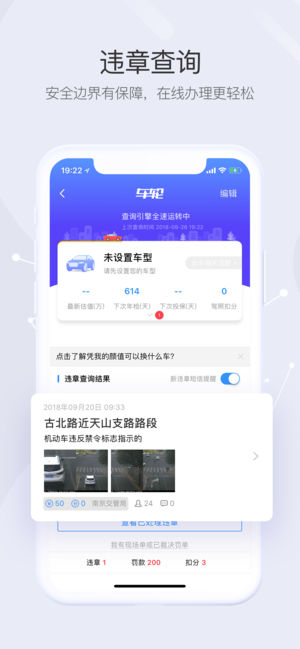车轮查违章下载地址 大小 138.8 MB 暂无安卓下载 苹果下载 暂无电脑下载 车轮查违章更新内容 同步2019年4月各地最新罚款扣分数据; 新增全局搜索功能; 靠普二手车全新升级; 优化多处车主服务功能; 车轮查违章介绍 车轮查违章致力为广大车主解决违章查询、驾驶证查分、汽车保养手册、车险提醒、汽车估值等多项用车问题。 车轮查违章截图