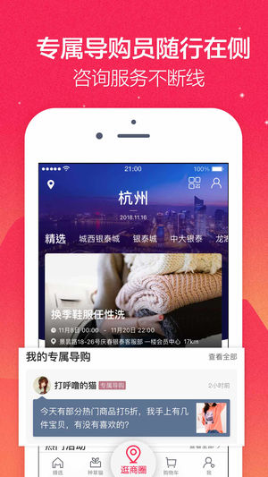 北京、成都、广州、杭州、南京、上海、深圳、苏州、天津、武汉、西安、重庆。这12座城市的朋友,我宣布从今天开始,只要打开【逛商圈】,你就瞬间拥有各种福利、还能预约体验活动的专属权益!