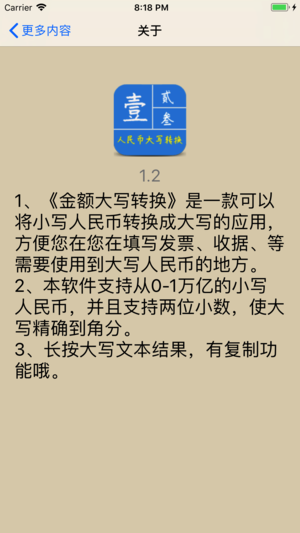 1、《人民币大写转换》是一款可以将小写人民币转换成大写的应用,方便您在您在填写发票、收据、等需要使用到大写人民币的地方。