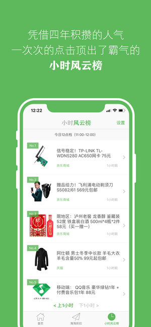 逛丢网已经上线四年,每天大量的用户来到这里,用一个个点击帮你把最好的折扣顶出来,我们每小时选出最靠谱的10条,它有个略霸气的名字,叫做:小时风云榜。