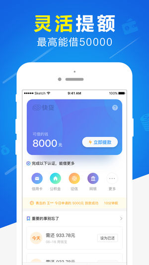 快贷平台于2015年2月发布,旨在为更多的互联网用户提供便捷、高效的互联网借贷服务。目前包含极速借款和大额借款两种模式,让用户在无抵押、无担保的情况下快速得到资金支持。