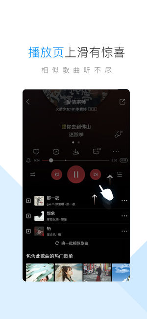 1、播放页上滑有惊喜,相似歌曲听不尽