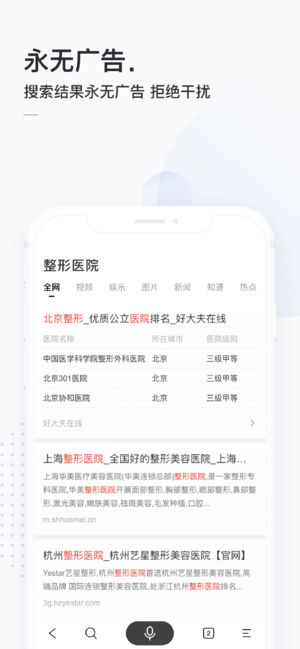 【极致体验】全国首款搜索无广告软件,无时不刻极致搜索!拥有强大的语音、图像识别内核;极简设计,极速体验。