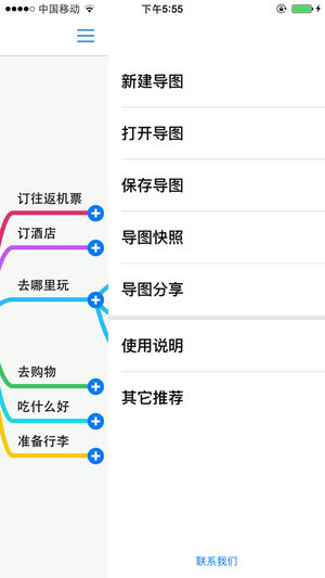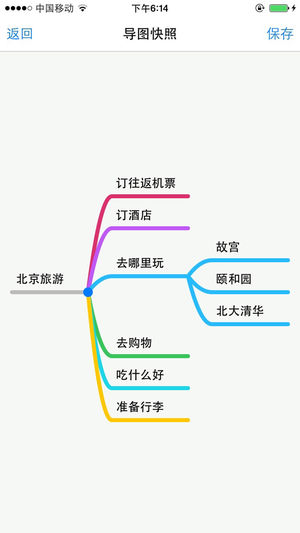 点击分支上的+号,即可向左右两边扩展分支,长按分支上的文本会弹出功能菜单,可以进行复制、剪切、删除、备注和标记等操作。制作好的导图可以导出为图片、PDF和Html等多种格式,并能随时随地分享给好友。