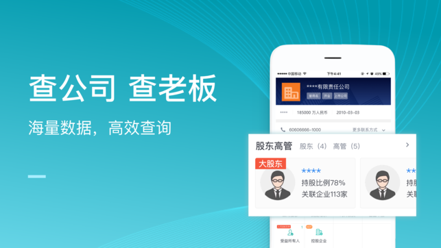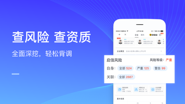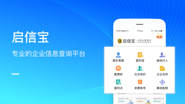 启信宝是一款快速精准的企业信息查询工具,为各行业人士提供丰富详尽的企业信息检索服务,包含全面、客观、权威的工商、投资、司法、资质、许可、处罚等企业信息,是商务人士必备的企业征信利器。