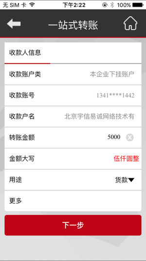 4、交易审批:支持转账、工资发放、理财业务、国际结算、电子汇票、集团服务等交易的审批。