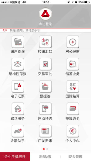 广发企业手机银行为您提供安全、便捷、个性化的移动金融服务,涵盖转账汇款、账户查询、交易授权、理财业务、国际结算、电子汇票、银企对账、自助注册等业务模块,更可个性化定制业务功能,打造属于您的手机银行。