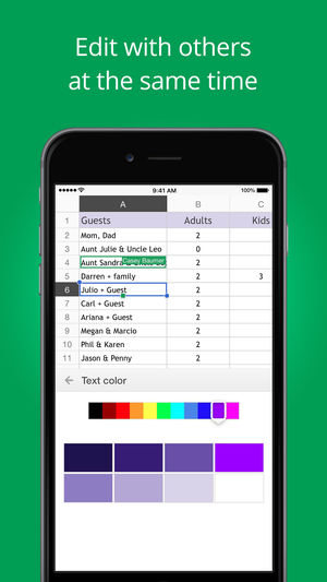 * 与他人共享电子表格,并同时协作处理同一份电子表格
