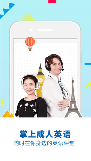 掌上成人英语是针对成人用户的英语在线课堂。依据英语学习所需求场景,APP设计基于人机学习的英语视频场景课堂和基于外教的真人在线课堂。