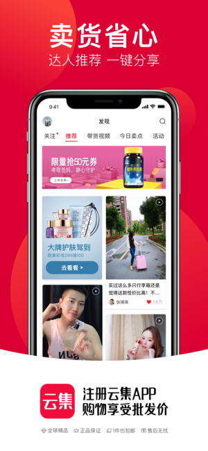 云集是一款在移动端开店的APP,为店主提供美妆个护、母婴用品、食品保健、家居生活等上万种正品货源,并有海量商品图文,手把手培训,一键代发,专属客服等特色服务,是个人零售服务平台。