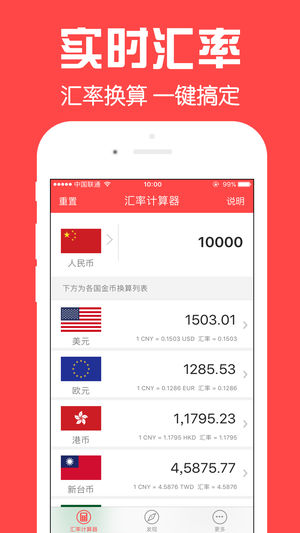 强大的汇率换算工具,实时线上获取最新汇率,计算精准,操作简单,一目了然,iPhone上最专业的汇率换算器,是您管理自己财产的好帮手,欢迎下载并提供您的意见。