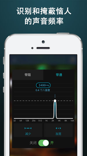 • 带阻滤波器掩蔽您的耳鸣症状。