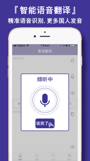 2,语音翻译:最新人工智能技术,高分辨率人声识别转为文字翻译!泰国旅游/泰语学习必备翻译助手。