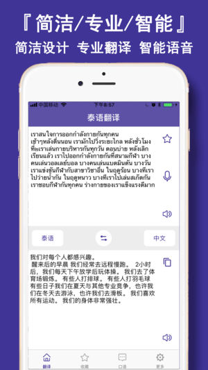 《泰语翻译专业版》中文泰语互译神器,语音识别翻译、地道发音,泰语日常口语库。泰国旅游泰语学习随身必备!