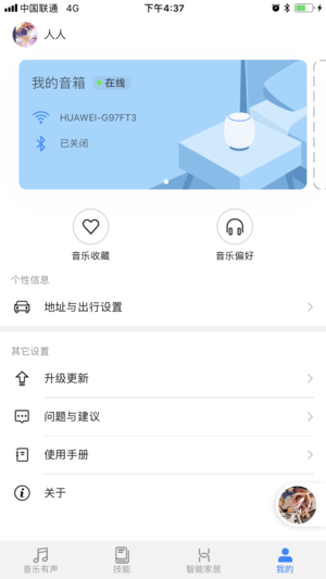 3. “我的”界面音箱卡片UI优化。