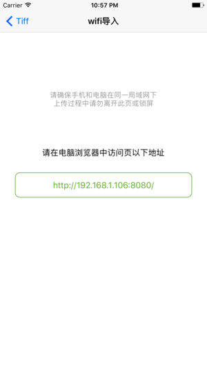 3.可以通过wifi上传,导入电脑中的tif文件。