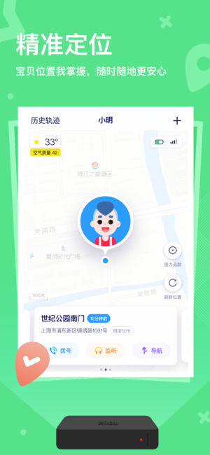 这是一个用来连接Kido儿童手表的app,家长使用该App可以激活手表,添加监护人,查看小孩子的位置,活动轨迹,步数,还可以像使用微信语音一样,和小朋友互发语音。更重要的是,我们增加了更多人性化的应用,为小朋友添加任务、管理日程,为小孩子养成良好的时间管理习惯。