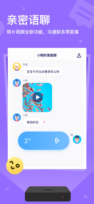 支持监护成员与孩子间语音聊天,增添趣味表情包;