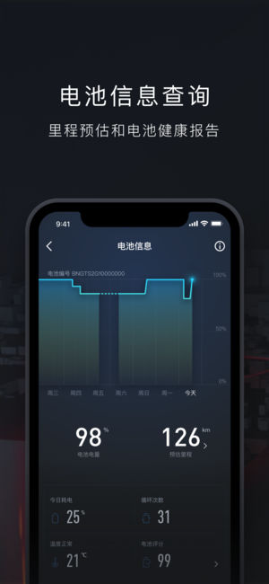 • 车况:剩余电量、定位信息、历史轨迹、骑行统计;