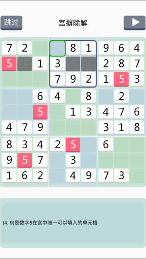 数独学院打造了一个强大的实时答疑系统,她可以动态展示每一个详细的解题步骤,每一个技巧及详细描述,解答同学的每一个疑惑。