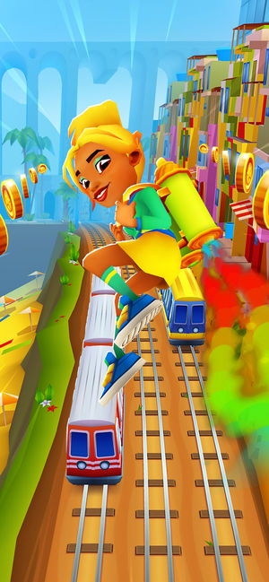 地铁跑酷世界之旅继续启程,里约新版本来袭,主人公杰克又将踏上新旅程,这次来到的地方是上帝之城里约,游玩繁华的城区,沿路看到面包山、尼特罗伊大桥和巨型基督像,更可以骑着五彩缤纷的飞羽滑板,穿梭在繁华的街区!小伙伴们,还在等什么,赶紧下载更新地铁跑酷与全球20亿玩家一起来里约愉快的春游吧!